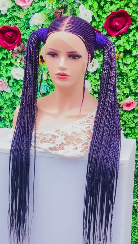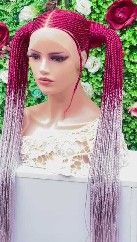 AFRIKANISCHE GEFLOCHTENE PERÜCKEN MIT ZWEI PFERDESCHWÄNZEN UND VOLLER SPITZENVERSCHLUSS