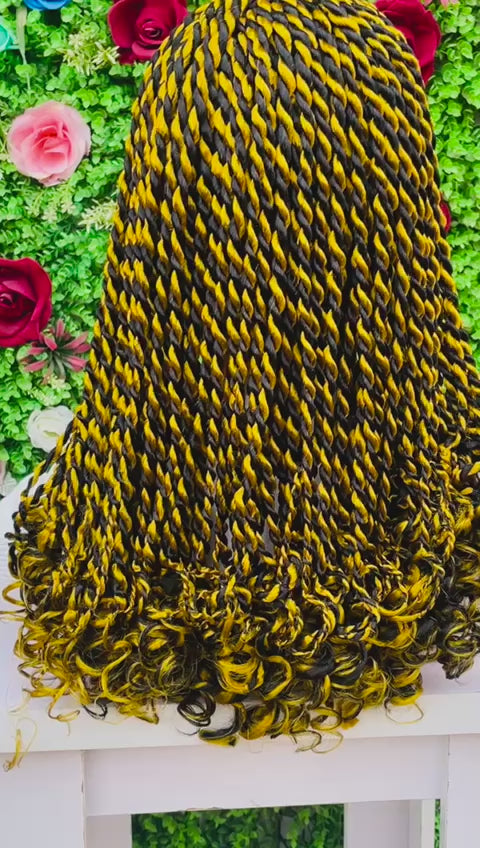 KURZE BIG TWIST MIT LOCKEN GEFLOCHTENE PERÜCKEN MIT 2*4 VERSCHLUSS