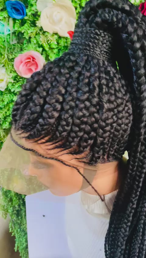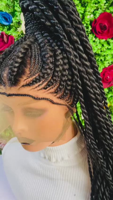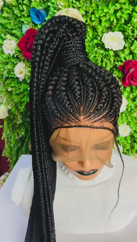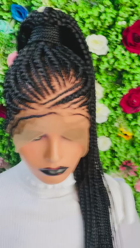 Geflochtene Conrow-Perücken mit Pferdeschwanz und 360-Grad-Spitzenverschluss